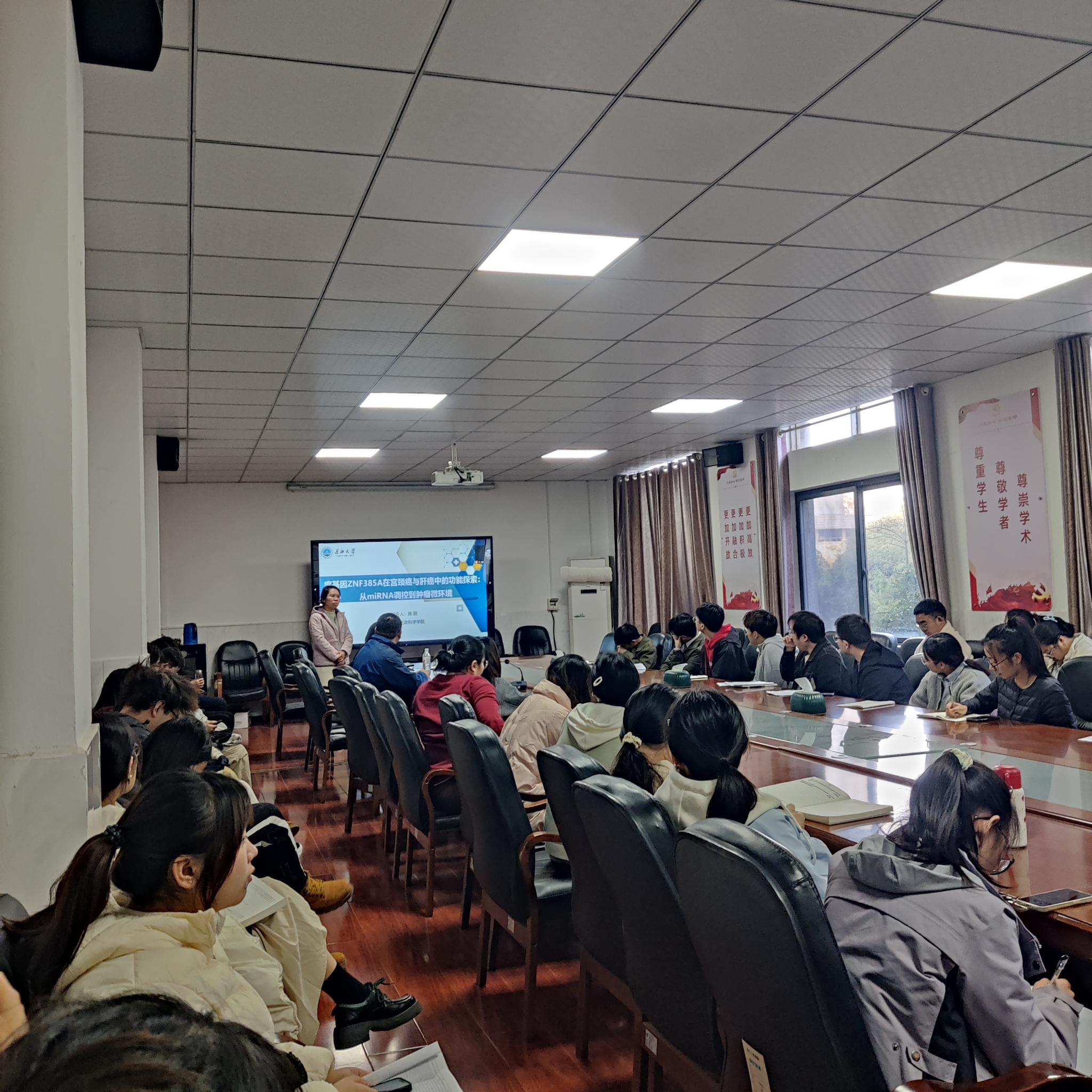 (通讯员:杨笑彦)11月27日下午,3044永利在西校区1-217举办求实导师学术沙龙。此次活动由张东辉博士主持。丁保淼教授做题为《基于人工神经网络评估山药淀粉水解度及工艺参数权重》的报告,硕士生导师陈颖做题为《癌基因ZNF385A在宫颈癌与肝癌中的功能探索:从miRNA调控到肿瘤微环境》的报告;硕士生导师李曼菲做题为《玉米苗期耐渍性形成机理的初步探究》的报告;共80余名师生参加。