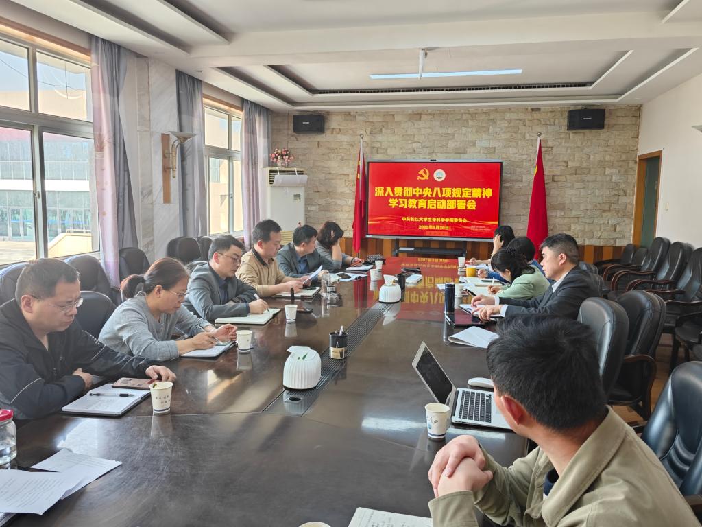 学院党委书记谢作喜传达学习了中央党的建设工作领导小组召开会议研究部署深入贯彻中央八项规定精神学习教育工作会议精神及校党委有关会议精神。谢作喜强调,各党支部要以“三会一课”、主题党日活动等形式,组织党员干部深入学习贯彻习近平总书记关于加强党的作风建设的重要论述和中央八项规定及其实施细则精神,切实把思想行动统一到党中央决策部署和学校党委工作要求上来,高标准高质量开展好学习教育,紧密结合实际,认真检视查找贯彻落实中央八项规定及其实施细则精神方面存在的问题,立查立改,纵深推进全面从严治党,为实现一流学科建设突破、早日建成特色高水平大学提供坚强保障。