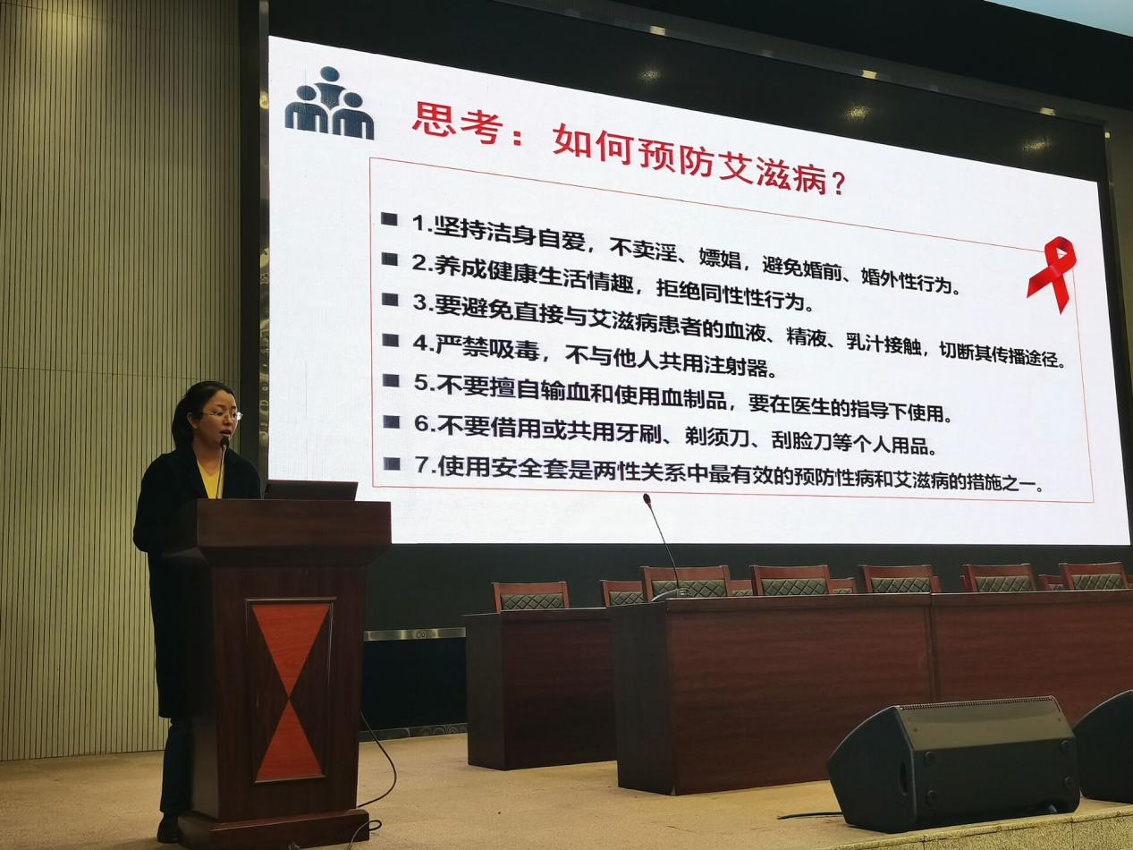 辅导员范昆琨老师从防毒、防艾、防恐三方面向同学们讲解相关知识。在防毒方面,她介绍道毒品是一类能使人形成瘾癖的药品,坚决不吸入第一口毒品可以有效抵制毒品的危害。同时,她纠正了同学们对艾滋病错误的观念,告诫同学们其实艾滋病离同学们并不遥远,防艾应从自身,从现在做起。最后,范老师就恐怖主义主要表现以及它的安全威胁向同学们做了简单介绍。至此,此次大会圆满结束。