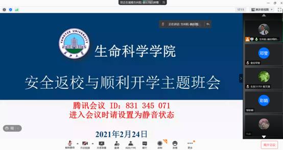 (通讯员 班元元) 为认真落实省教育厅和各校区属地社区关于校园疫情防控的总体要求,切实做好2021年春季学期开学的各项工作。按照学校通知要求,3044永利于2月22日-24日分年级组织全体本科生和研究生召开了线上“安全返校与顺利开学”主题班会,引导学生树牢防控意识。