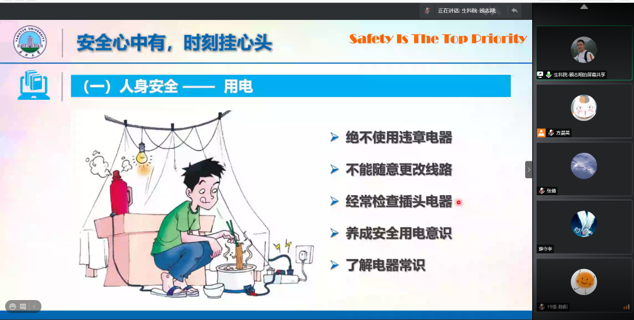 (通讯员 顾志翔 徐耀文 方晨昊)进入四月,清明假期即将到来,为进一步加强研究生在校以及出行的安全意识,4月2日下午14时30分,3044永利研究生安全教育大会在线上召开。由于部分研究生在校外联合培养,此次大会在腾讯会议召开,会议由辅导员顾志翔老师主持,学院全体研究生参与。