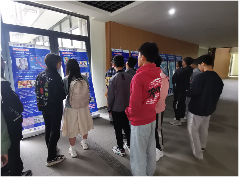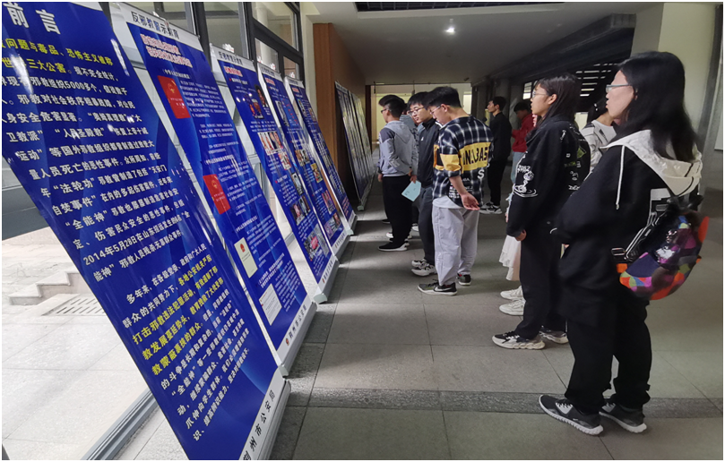 展览内容由二十块展板分成三列进行展示,展板上图文并茂,列举了反邪教、重健康、维护国家总体安全等知识。同时,带队老师现场解说,对《中华人民共和国国家安全法》、《中华人民共和国治安管理处罚法》等法律进行了精确解读,呼吁同学们发现危害国家安全的行为或其他破坏活动时,要积极拨打举报电话:12339。在参观展览期间,同学们仔细阅读展板内容,认真聆听带队老师的讲解。参观结束时,值班人员向各位同学发放了安全教育宣传页,除此之外,还有一系列的线上活动帮助同学们了解更多的国家安全知识。