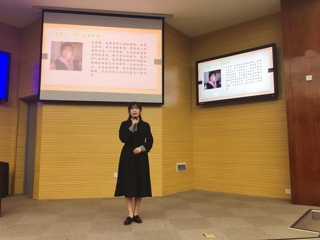 “没有一个冬天不会过去,没有一个春天不会到来。”比赛在主持人的一段致辞中拉开帷幕。本次演讲比赛采用了PPT与视频相结合的全新形式,向观众们更加生动形象的展示了疫情下的中国。参赛选手们围绕主题声情并茂的讲述了疫情期间的所见所闻所感,用最饱满的激情表达了对国家众志成城抗击疫情的赞美,诠释英雄的内涵。参赛选手钱晨用别出心裁的形式化身列车服务员观疫情之镜,向观众们展示了2020号列车1-12站的故事,将抗疫英雄的图影再次展现在大家面前,赢得了观众们热烈的掌声。“沧海横流,方显英雄本色。”伴随着最后一位选手孙晓婷慷慨激昂的声音,整场大赛画上了完美的句号。在工作人员统计评委结果的同时,主持人邀请范老师上台致辞,范老师结合选手们的表现进行了精彩的点评,总结各位选手的优点,指出不足,同时给予鼓励。