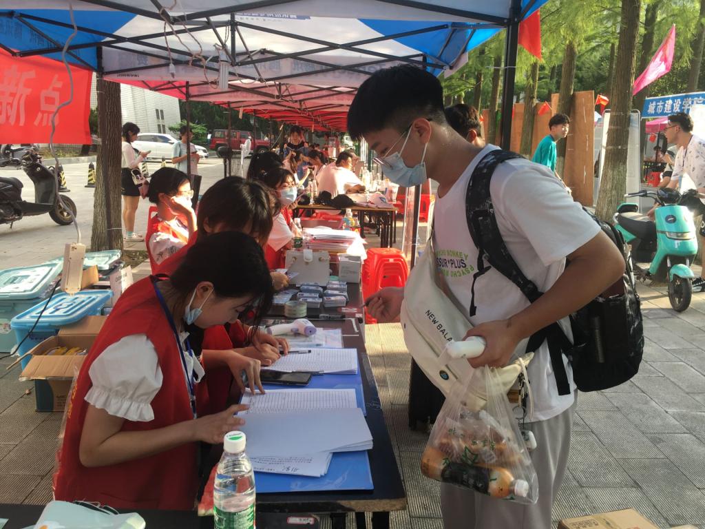 我院高度重视此次迎新工作,对人员安排、新生接站、后勤保障等工作进行了详细部署。志愿者以饱满的热情带领新生注册报道,帮忙搬行李,发放校园卡,引导入住寝室。他们热情地向新生介绍学校的地理环境,提醒学生安顿好之后自主办理洗澡卡,领取军训服装。老师们也认真的回答学生的问题,让每一位报道的学生倍感尊重与关怀。