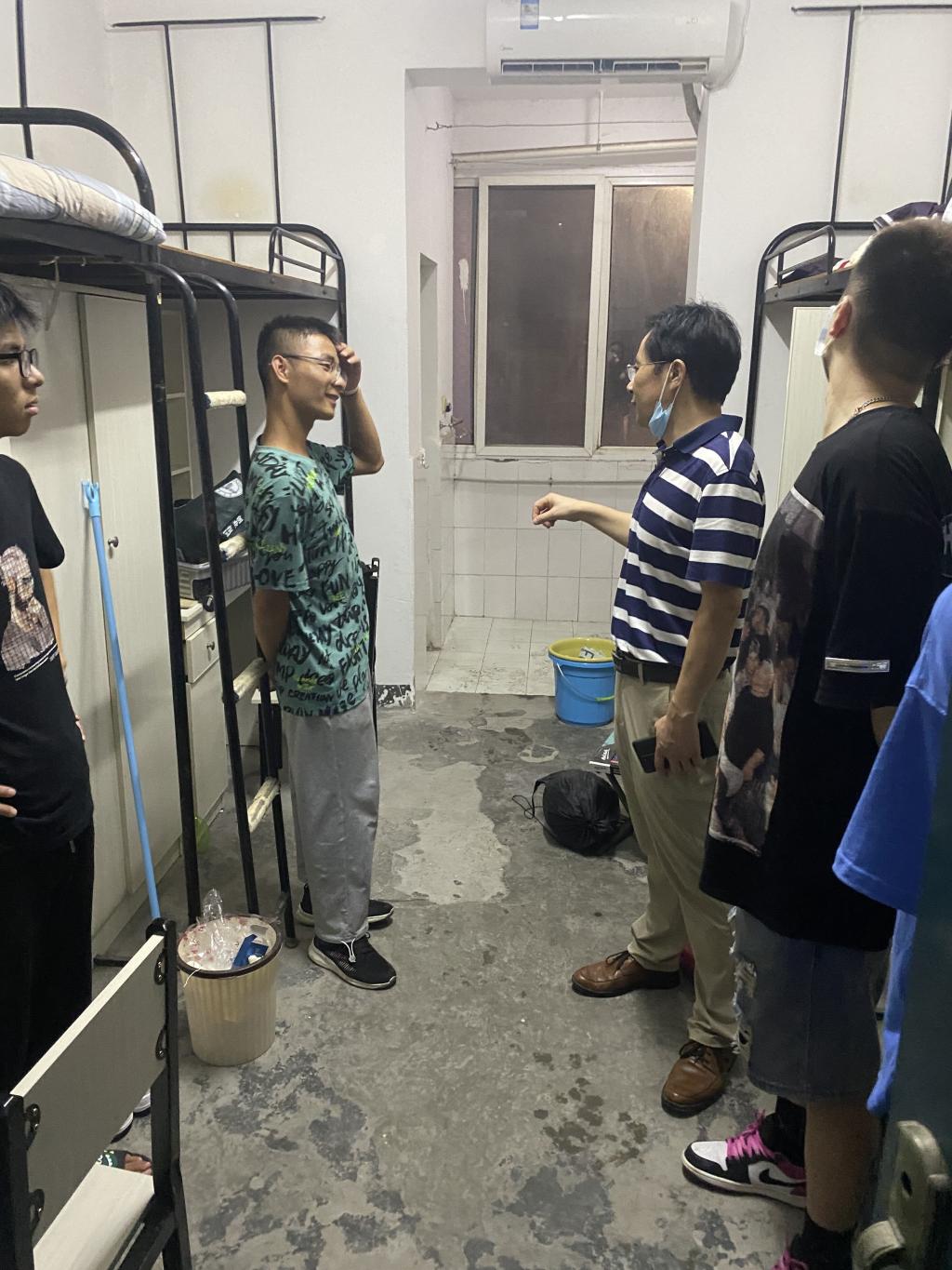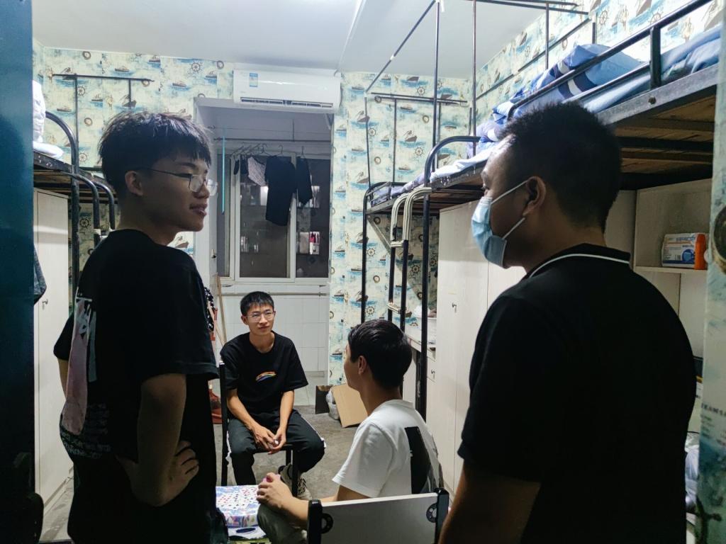 (通讯员 范昆琨 白旭红)2021年9月4日晚8点,3044永利党委书记蔡哲斌教授、副书记汪萍老师、新生辅导员顾志翔老师深入2021级新生寝室,与新生亲切交流,了解新生学习生活适应情况。