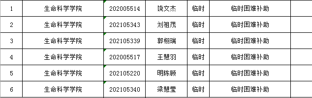 根据长江大学学生勤工助学及临时困难补助管理办法,结合学生资助中心的相关要求,现将2021年10月份临时困难补助名单予以公示。如有异议,可以书面或来电方式向生科院学工办反映。