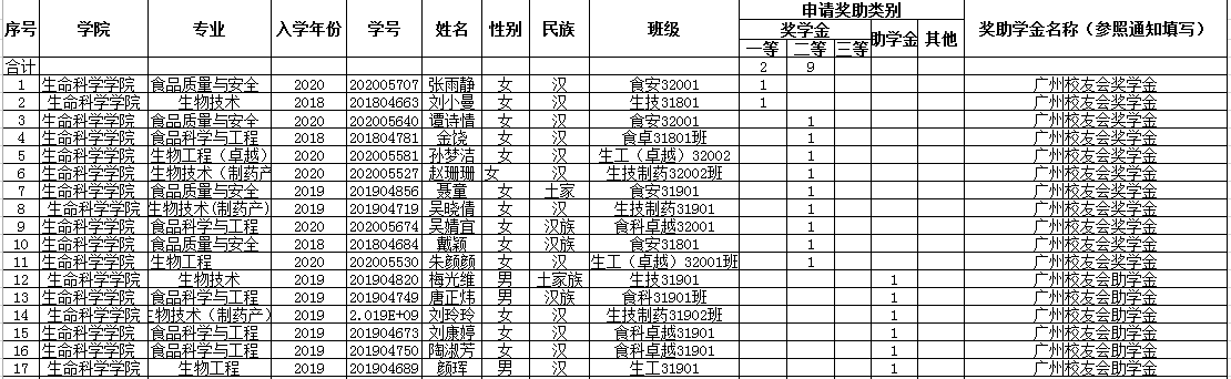 根据《长江大学普通本科生奖助学金管理办法》要求及有关文件精神,结合我院实际情况,经学生本人申请、学院奖助学金评审小组审核、学院党政联席会通过,现将17名初评名单公示如下: