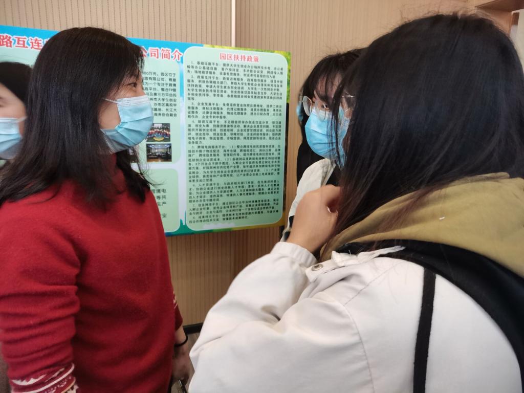 招聘会伊始,各大企业从其规章制度,福利待遇,企业文化,现有产业结构,组织构架,人力资源政策等方面对同学们进行了介绍。其后,汪萍书记就大学生就业扶持政策进行了详细的介绍,帮助解决同学们对于就业待遇的疑惑,对于学生提出的其他问题一一进行了详细的解答。最后,同学们纷纷于自己感兴趣的企业投递了简历,招聘会圆满结束。