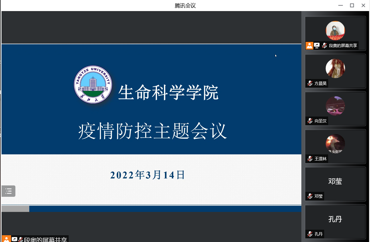 (通讯员 顾志翔 段奥)为贯彻落实学校疫情防控工作要求,进一步做好特殊时期疫情防控工作,3月14日下午,3044永利利用腾讯会议顺利召开研究生疫情防控专题会议,此次会议由辅导员顾志翔主持,全体研究生参加。
