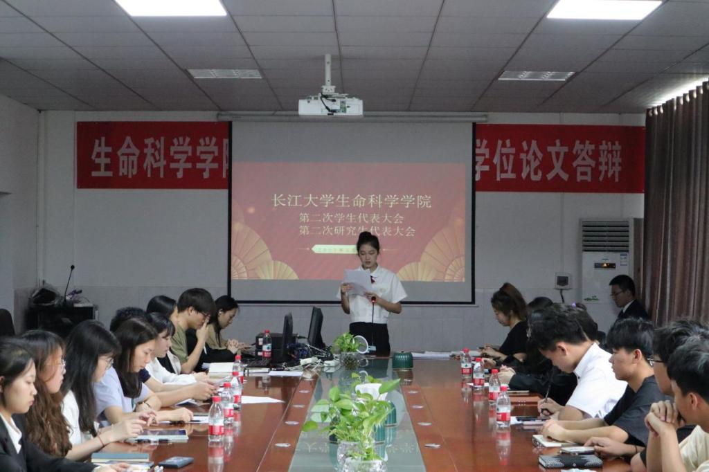 在预备会议阶段,审议通过了校两会候选人建议名单和主席团建议名单,并进行投票表决。在正式会议阶段,党委副书记汪萍老师代表学院作工作汇报,总结了过去一年中,我院在党建思政、专业学科建设、学团工作等方面取得的一系列可观的成绩。石陈珺同学和李俊慧同学分别代表生科学院研究生会和学生会作工作汇报。会议公布选举产生的长江大学第四次学代会、研究生会代表名单和新一届团委学生会、研究生会主席团成员名单。