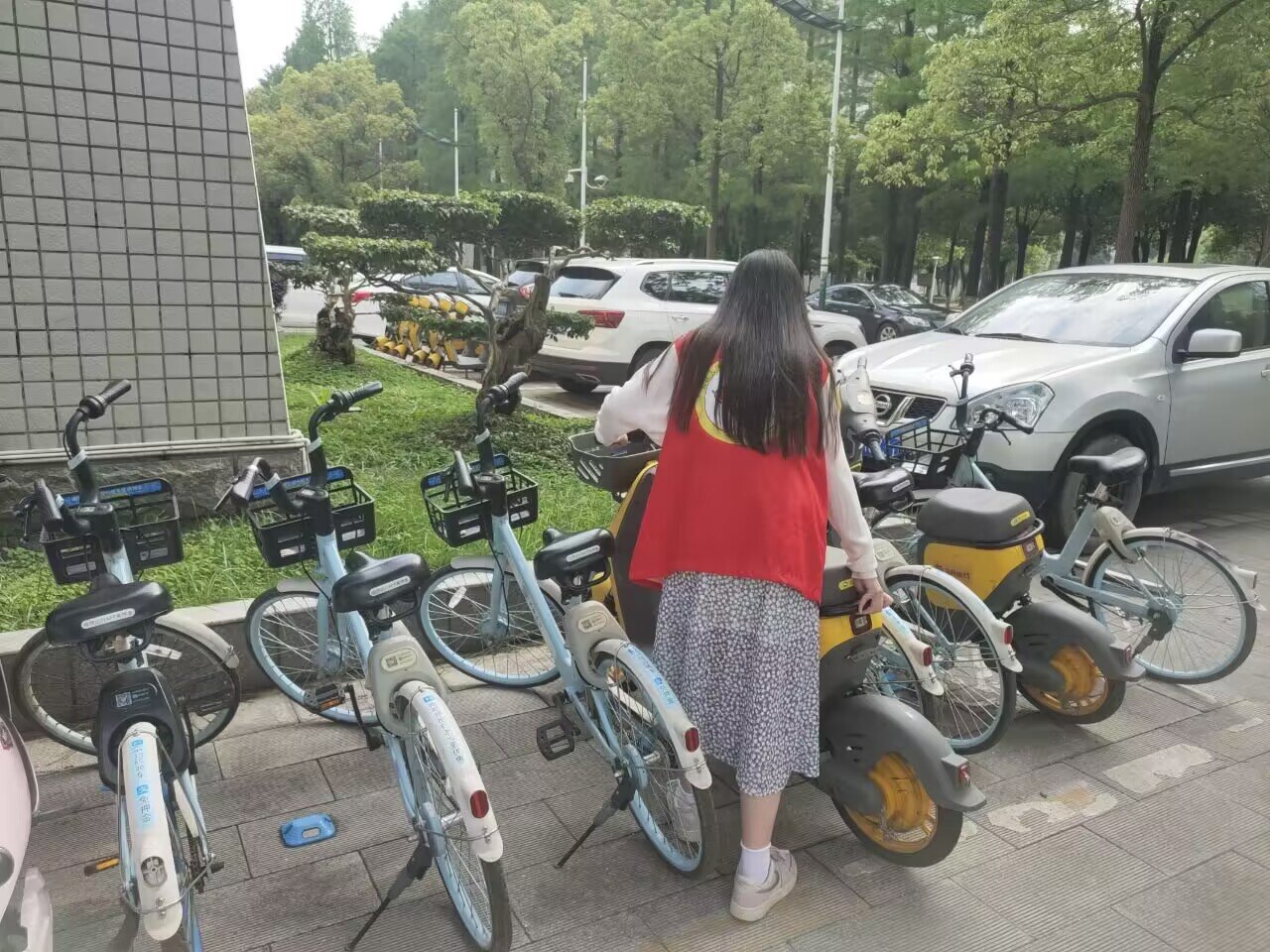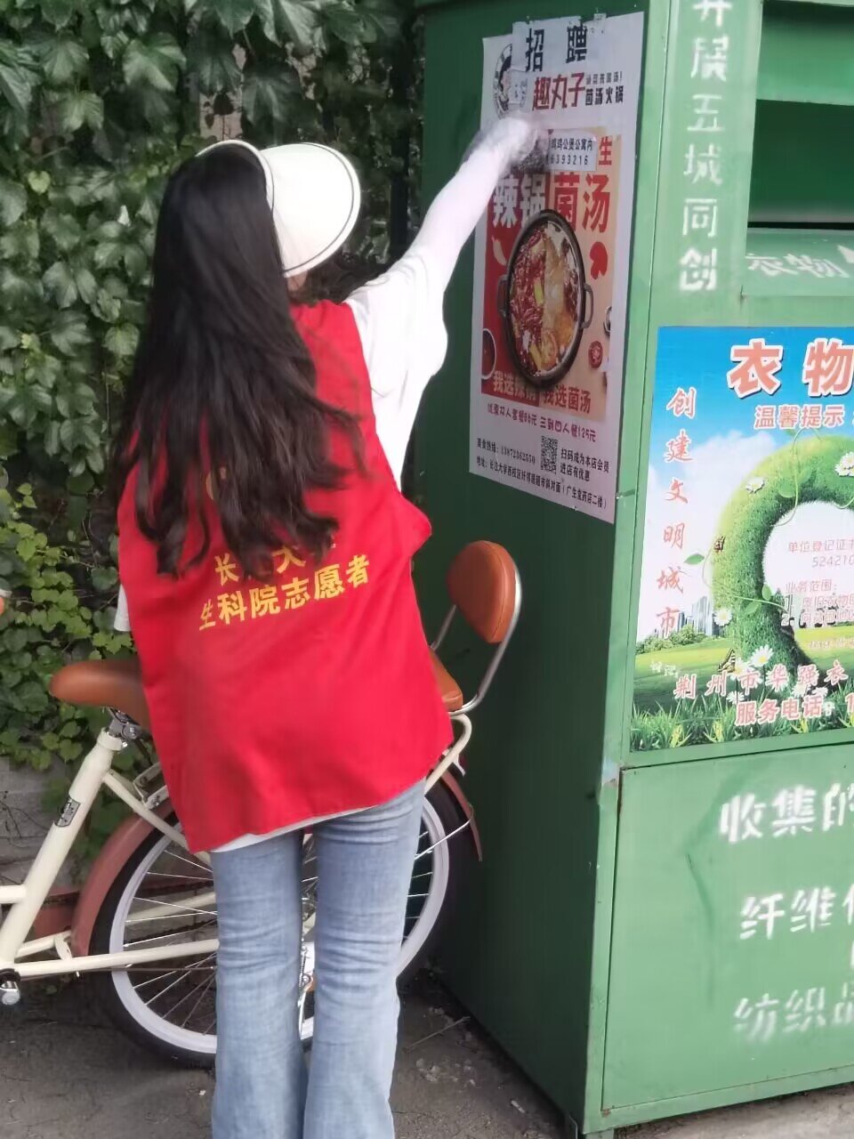 下午四点,活动现场,参与人员身穿志愿者马甲,戴着手套,拿着钳子、扫帚、垃圾袋等清洁工具,沿路捡拾纸屑、塑料袋、烟蒂等。大家齐心协力对街道路面、校园道路等进行清洁;清理完路面垃圾之后,志愿者们还将停放无序的共享单车一一挪到规定的停车区域并摆放整齐,将墙壁上乱贴的小广告铲除干净。随着气温升高,志愿者的额头、脸上都渗出了密集的汗珠,但每位志愿者依旧乐在其中。活动第二天,志愿者们在经历了昨天的清扫后,对这次劳动教育有了更深刻的体会。清扫、捡拾、整理……经过志愿者们两天的努力,社区街道和校园卫生焕然一新。