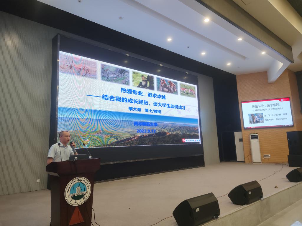 917,我院邀请优秀校友西华师范大学黎大勇教授,在西校区农科大楼1058报告厅为2023级本科生和研究生作了题为“热爱专业,追求卓越”的报告。学院院长杜何为,副院长陈卉、李真顺,教学办张欣老师,辅导员郭凯老师等出席。
