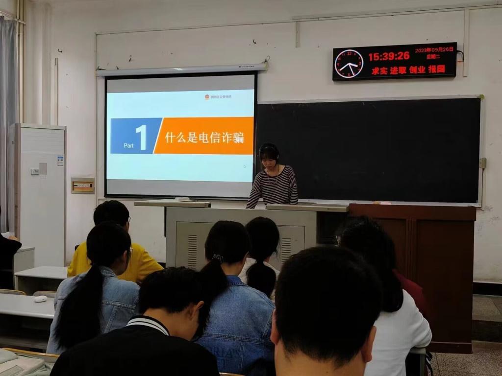 此次活动由各班负责人开展,通过PPT开会讲解的方式,用实事案例向同学们介绍了多种高风险诈骗形式,着重讲解诈骗典型手法以及应对措施,呼吁同学们保护好个人信息的同时,也注意保护好自己的财产安全,在日常生活中不轻信、不盲目、不转账,让不法分子无可乘之机。