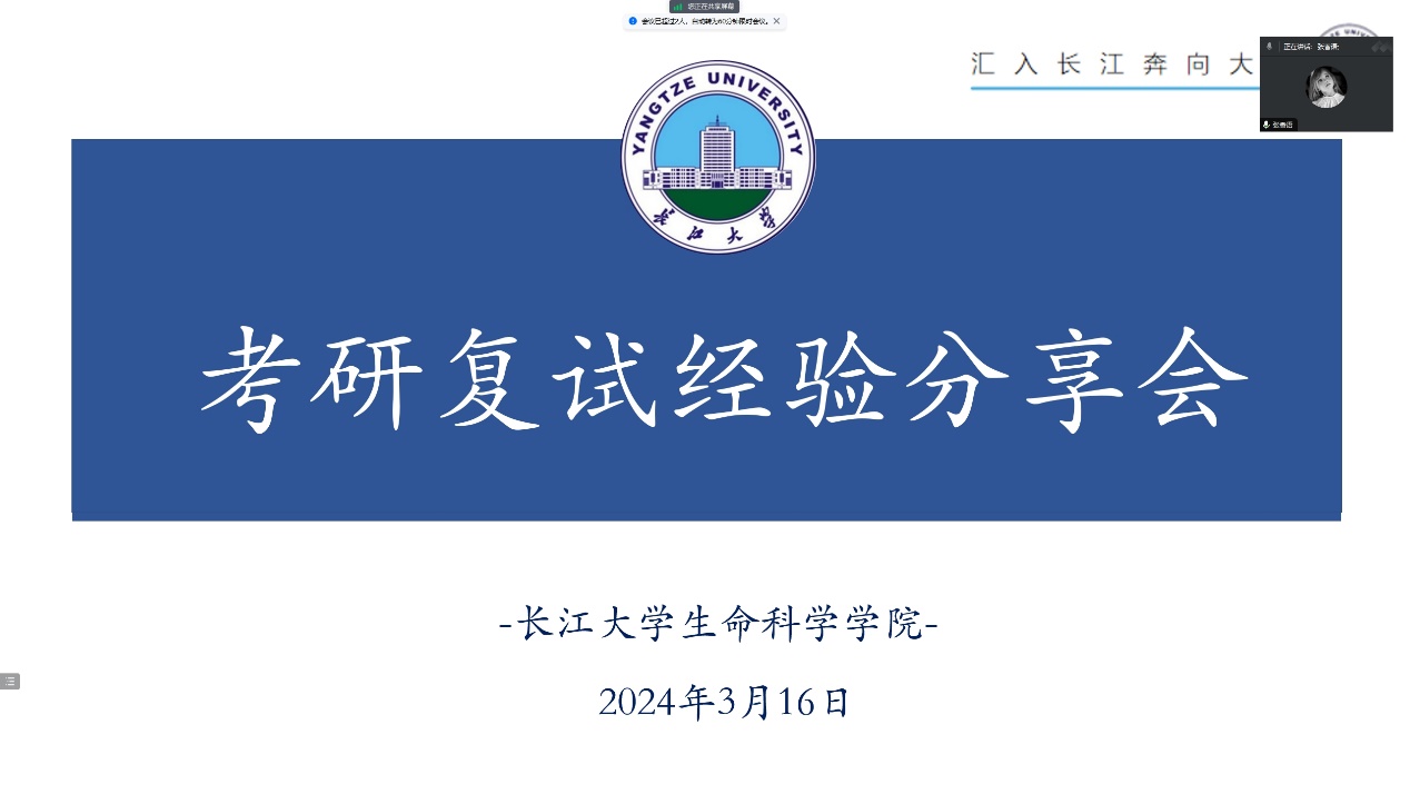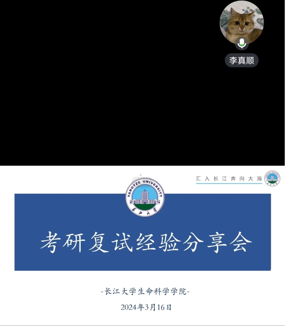 (通讯员:章崇烁)近日,备受瞩目的研究生考试成绩国家线正式公布,这一消息无疑在广大考生中引起了强烈的反响。为了帮助同学们更好地了解考研复试的流程和要点,316日晚,生命科学学院精心组织了一场线上考研复试经验分享会,特邀2023届优秀毕业生张香语(现硕士就读于中国农业科学院)、王新(现硕士就读长江大学)作为主讲嘉宾,为同学们传经送宝。会议由辅导员章崇烁主持。