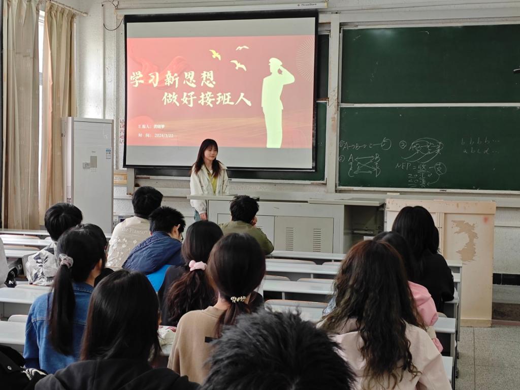 学院团委书记李敏呼吁同学们把习近平新时代中国特色社会主义思想转化为坚定思想、锤炼党性、指导实践及推动工作的强大力量,毫不动摇坚持和巩固党的领导地位和执政地位,鼓励同学们坚持发扬奋斗精神,为实现中华民族伟大复兴的中国梦贡献青年力量。