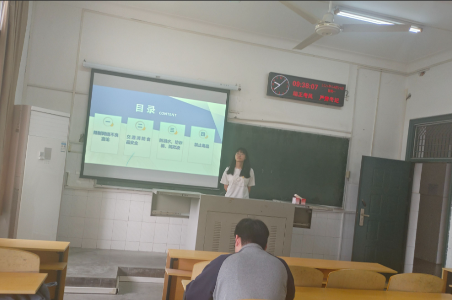 班会上,主持人强调了安全出行的重要性,提醒同学们选择正规渠道购票乘车,避免乘坐无牌无证交通工具,并密切关注天气变化。同时,主持人还就宿舍安全进行了重点讲解,要求同学们严格遵守消防管理规定,严禁使用违禁电器,确保宿舍安全无虞。