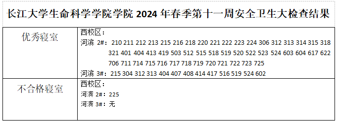 3044永利学院2024年春季第十一周安全卫生大检查结果