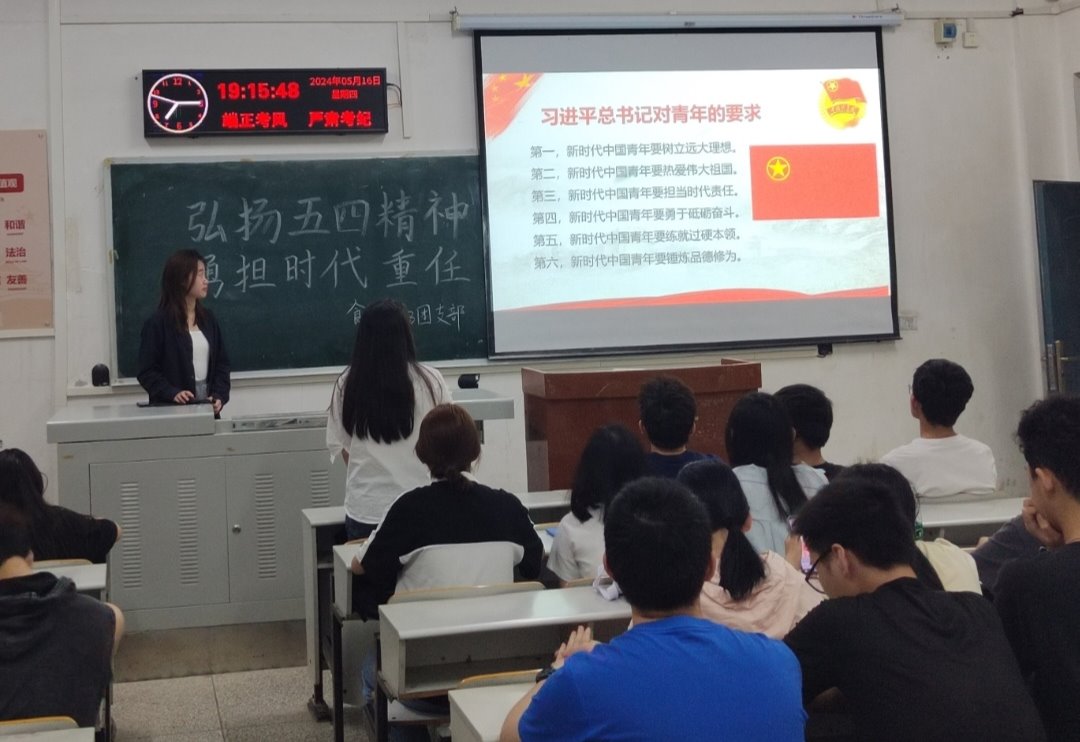 各团支部创新形式,认真学习习近平总书记在五四青年节对广大青年的寄语精神,并展开激烈讨论。团员们纷纷表示,要继承和发扬五四精神,坚定不移听党话、跟党走,争做有理想、敢担当、能吃苦、肯奋斗的新时代好青年,在推进强国建设、民族复兴伟业中展现青春作为、彰显青春风采、贡献青春力量,奋力书写为中国式现代化挺膺担当的青春篇章。