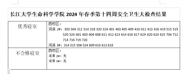 3044永利2024年春季第十四周安全卫生大检查结果