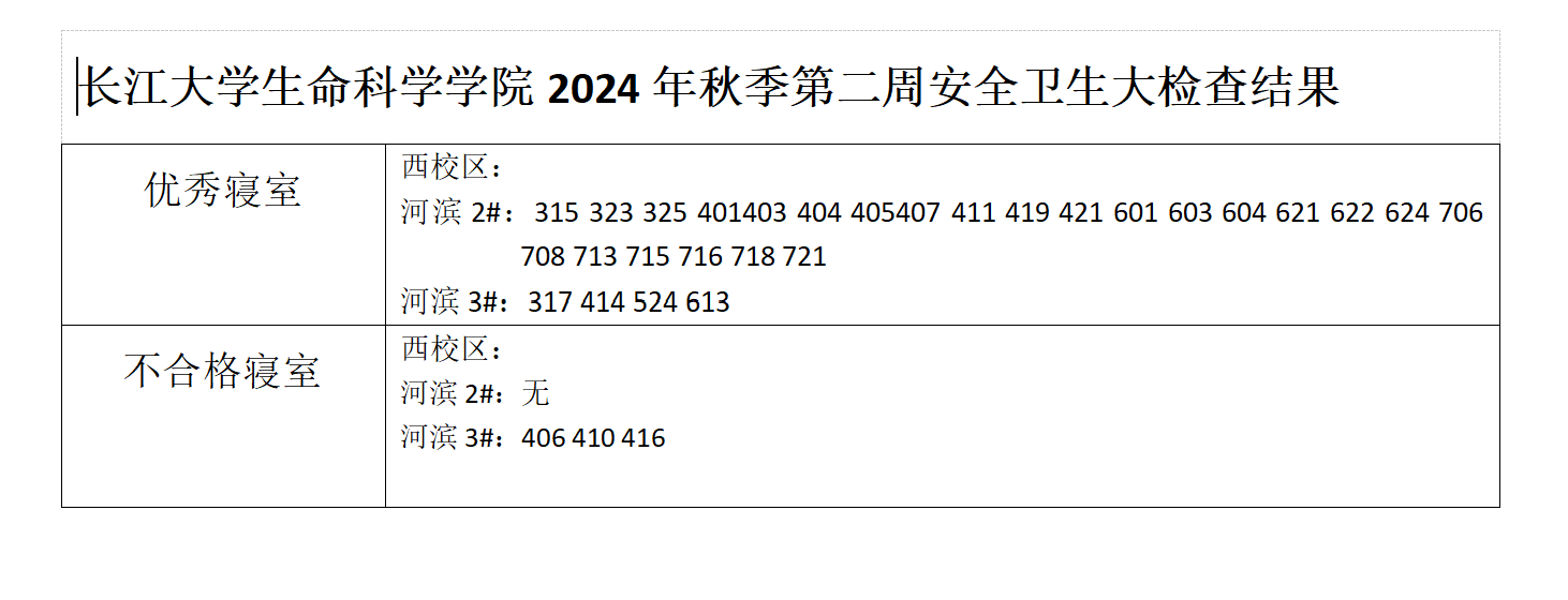 3044永利2024年秋季学期第二周安全卫生大检查结果