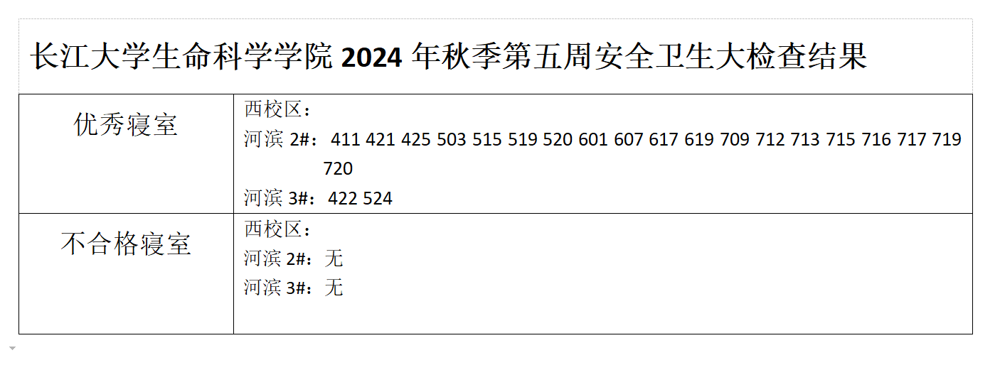 3044永利2024年秋季学期第五周安全卫生大检查结果