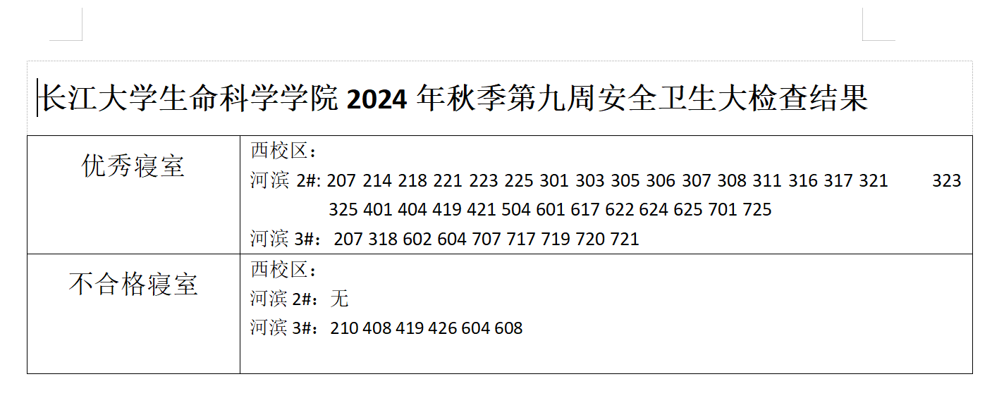 3044永利2024年秋季第九周安全卫生大检查结果
