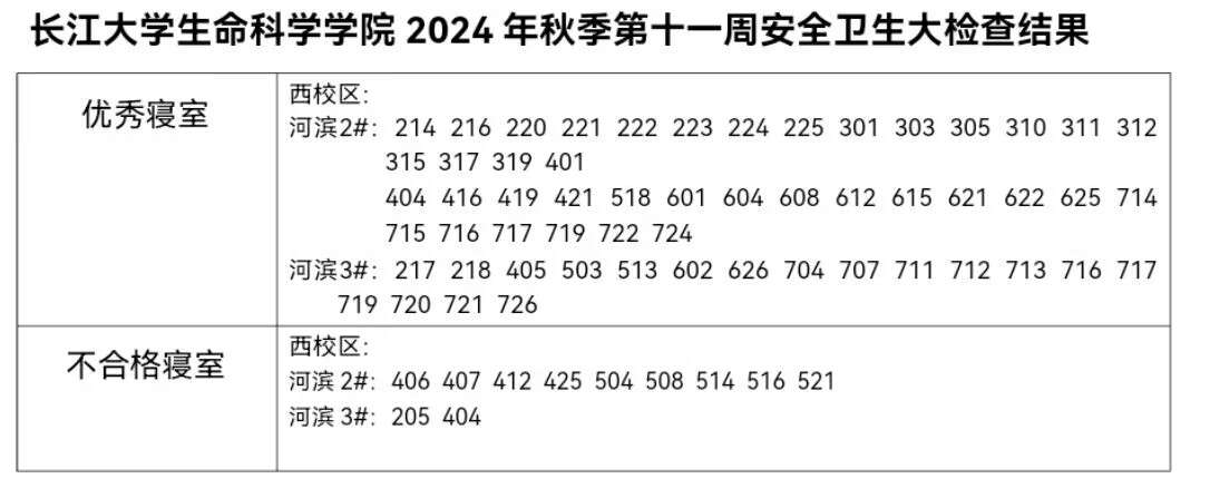 3044永利2024年秋季第十一周安全卫生大检查结果