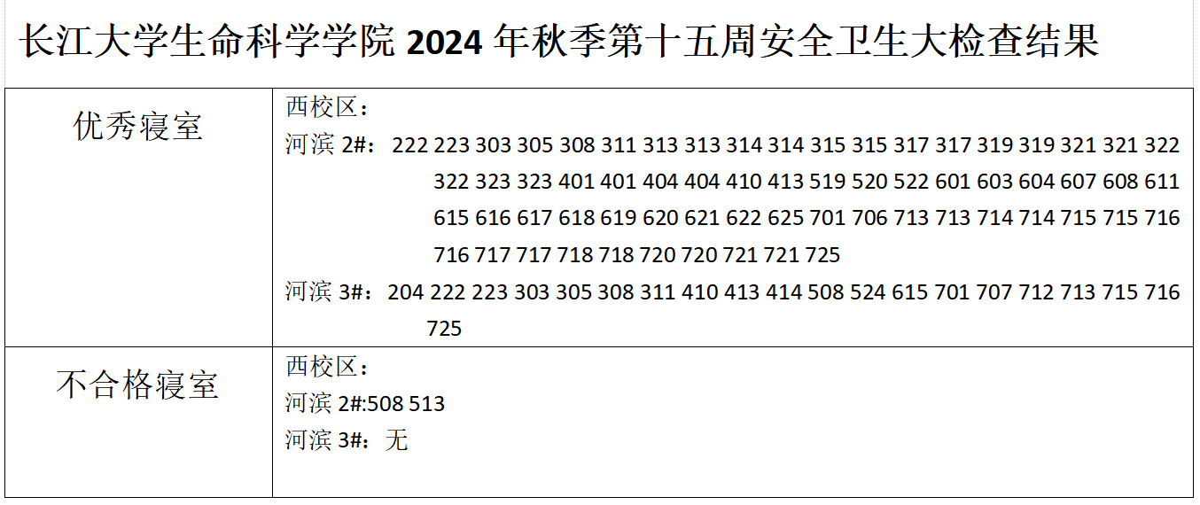 3044永利2024年秋季学期第十五周安全卫生大检查结果