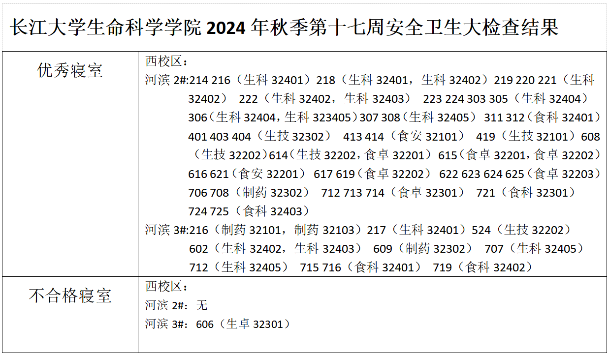 3044永利2024年秋季第十七周安全卫生大检查结果