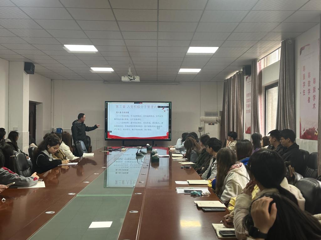 培训中,李敏详细阐述了管理办法的总则、管理目标、管理内容以及动态调整机制等核心内容。他强调,入党积极分子需通过量化考核与动态调整,全面展现其在思想政治、道德品质、专业能力和实践表现等方面的综合素质。同时,李敏还结合学院实际,对入党积极分子的选拔、培养、考察及档案管理等环节进行了细致讲解。