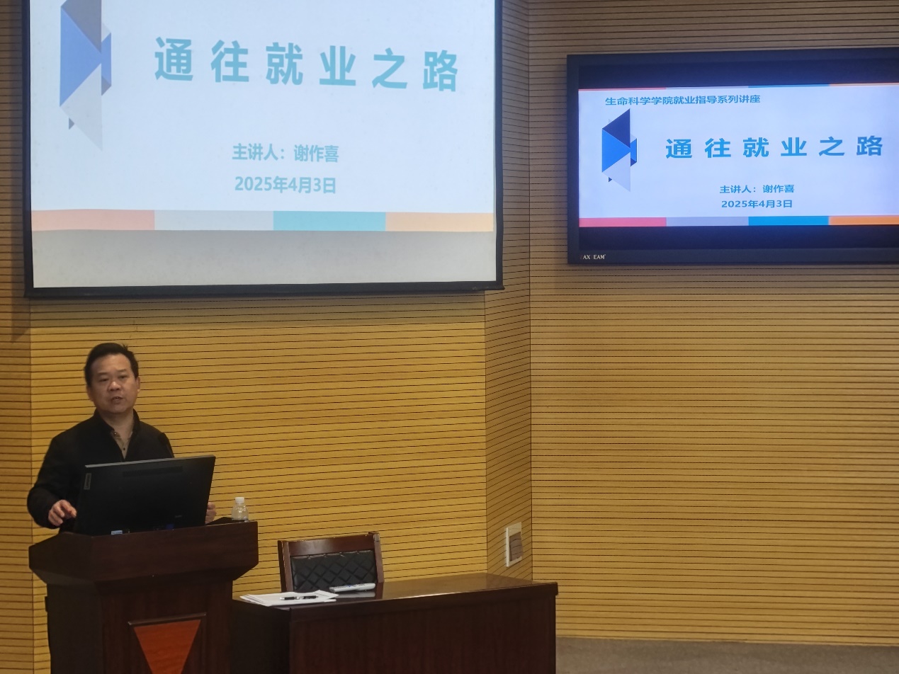 (通讯员 章崇烁)4月3日下午,3044永利党委书记谢作喜以“通往就业之路”为主题,在农科大楼1056学术报告厅为2026届毕业生作专题讲座。本次活动共有200余名学生参与,现场互动热烈。