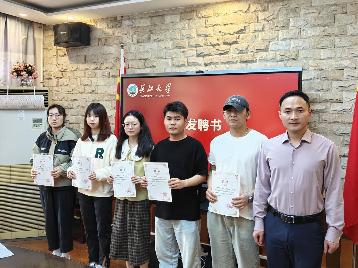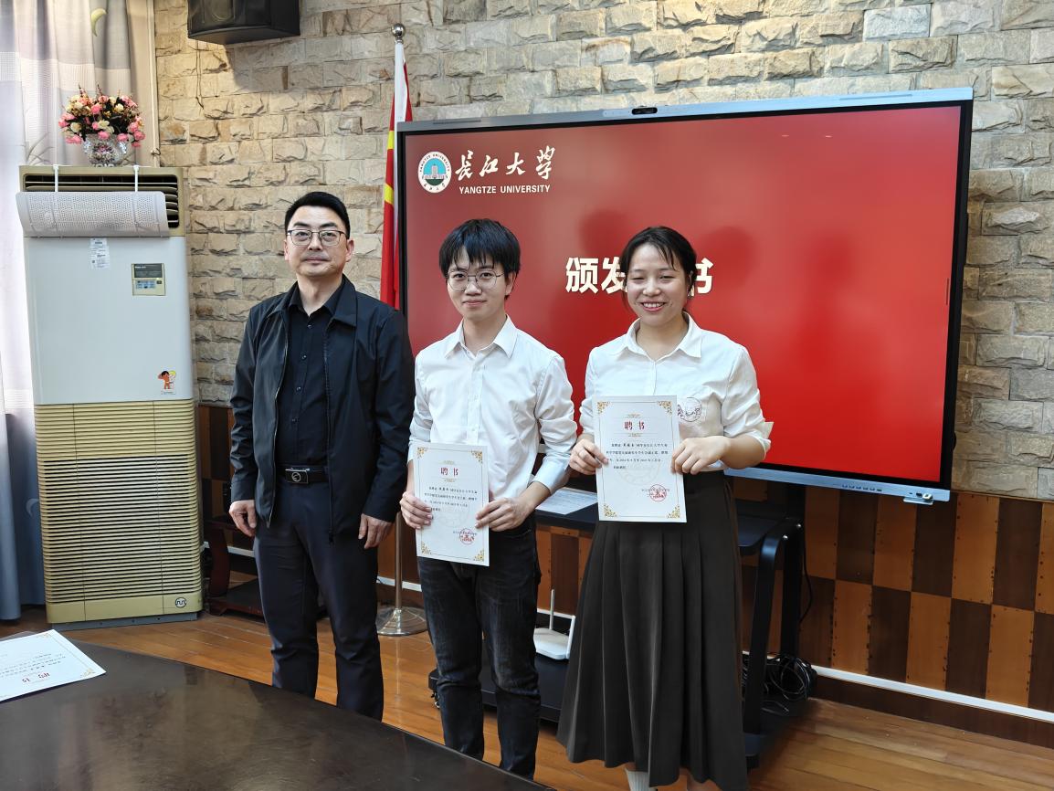 会议第一项,万波为第五届研究生会主席和部长颁发聘书。