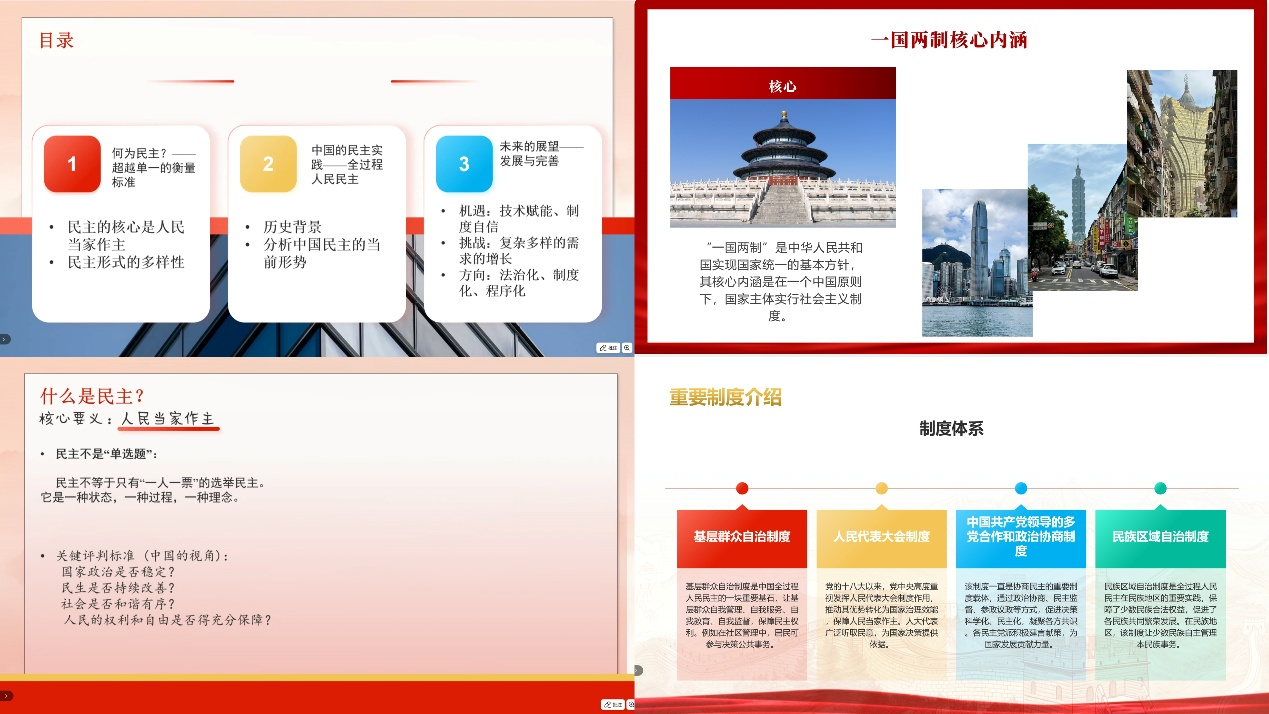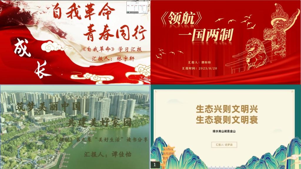 学员们围绕《领航》所涵盖的多个重大主题展开了深入而系统的探讨。林宇轩从“自我革命”角度阐释新时代历史成就;李茂、史梦涵聚焦“绿水青山”,系统梳理生态文明建设的进程与挑战;周游羽强调精神家园构建的重要意义。文瑶、谭佳怡等多位同学从民生改善出发解读“美好生活”,郭盼盼阐述了“一国两制”在港澳的成功实践。刘岳辉、牛小芮、田春蕾通过案例生动展示了全过程人民民主的广泛性与真实性,杨凯悦、黄利华等也分别就改革攻坚与生态文明提出青年一代的思考与责任。