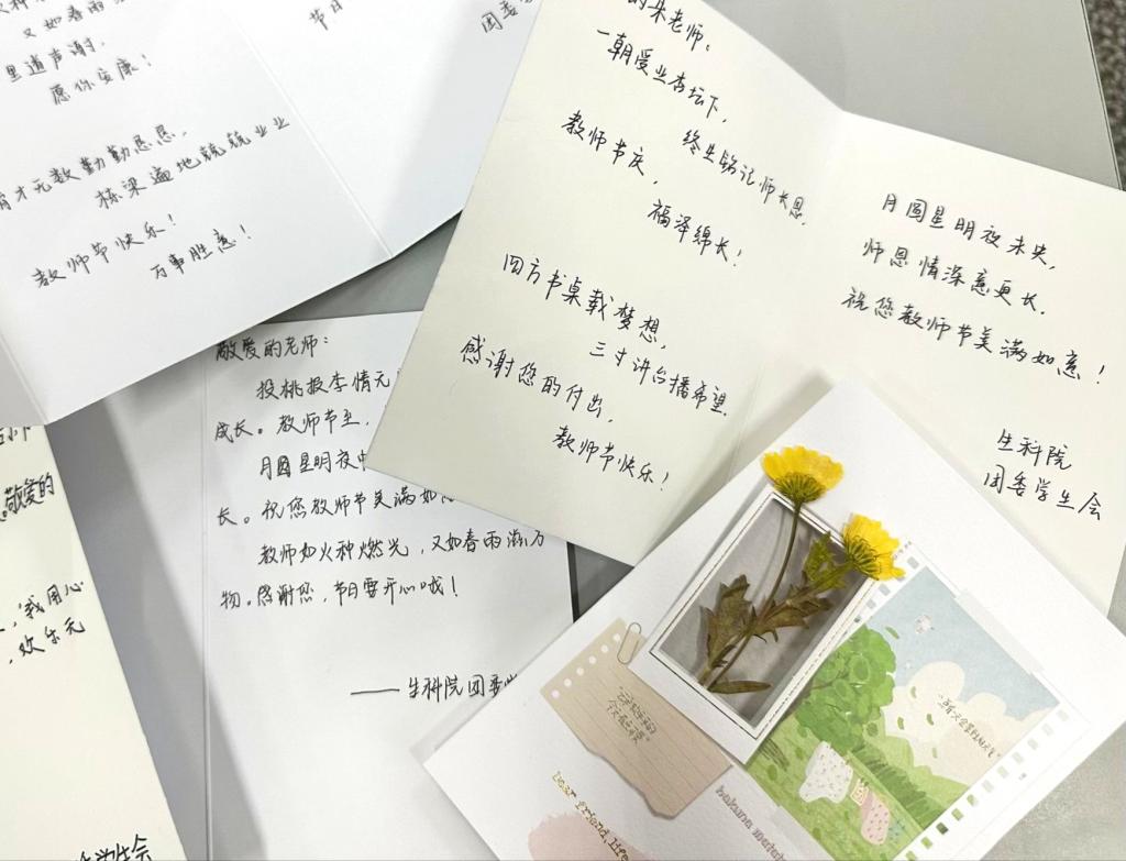(通讯员 黄舟横)在第41个教师节来临之际,3044永利的学子们用最质朴的方式表达对老师们的敬意与感谢,一张张饱含深情的手写贺卡,为辛勤耕耘的老师们送上了最真挚的祝福。