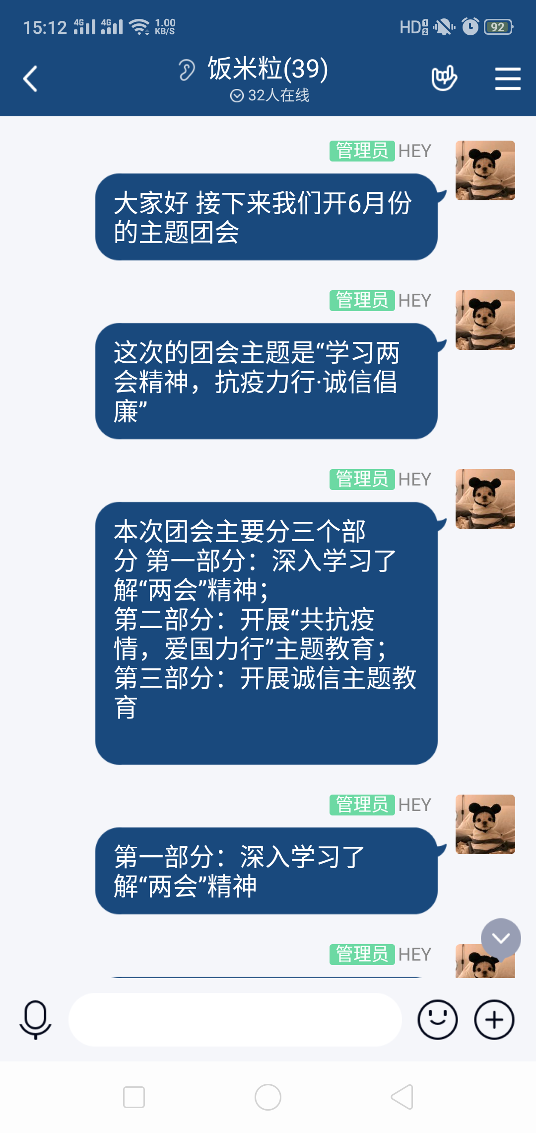 接着,团会进入第二阶段“共同抗疫,爱国力行”,团员李银芝总结性地提出了自己的建议:“在疫情期间我们需要注意好个人卫生,要勤洗手不要轻易到人多的地方聚集,同时我们还需要有一个良好的心态来抗击疫情。”通过大家分享的意见,周岚将如何发挥生技制药的专业优势传播健康的理念再次提出,并希望同学们在承担好自己责任的同时继续为抗疫斗争做出贡献。随后,周岚向大家连续分享了两个有关诚信倡廉的资料,《诚信是金》《做事先做人,拥有好人品》两个文件分别以图文结合的ppt与文字资料的形式展现在同学们的眼前,生动向大家传达了诚信做人的重要意义和关键作用,周岚强调我们一定要不忘初心牢记使命,走好诚信路, 担好诚信事,坚持做好诚信人!