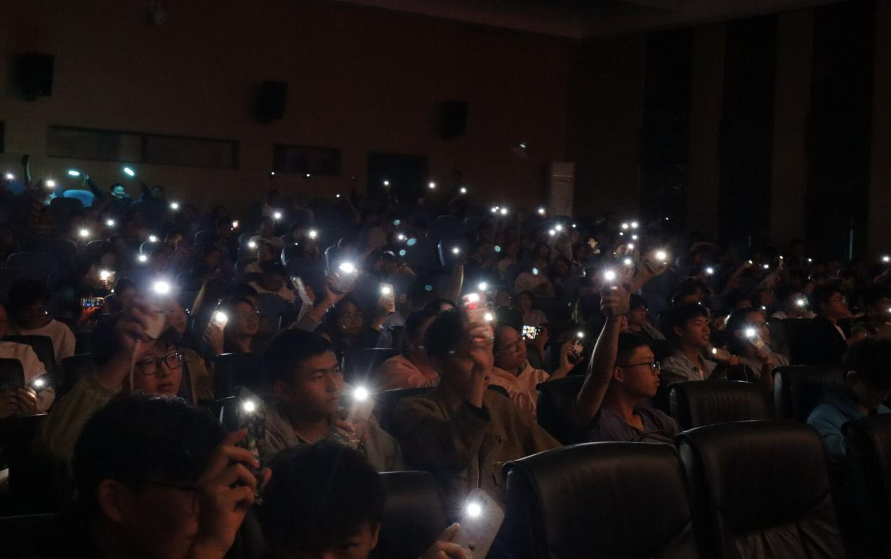 晚会最后,由董加利同学带来的《林俊杰组曲》演唱节目上,同学们纷纷打开手机闪光灯,举过头顶跟唱,现场歌声萦绕,热闹非凡。当一首首歌曲结束,同学们仍情绪高涨,为自己和台上的演唱者送上最真挚的掌声,也给这场晚会划上一个圆满的句号。