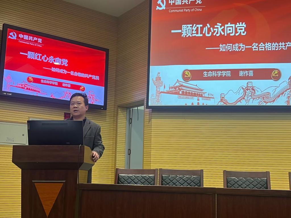 在本次党课上,谢作喜分别从中国共产党简单的历史、树立正确入党动机、自觉接受党组织的培养教育和考察以及如何做一名合格的共产党员四个方面展开,带领同学们深入学习一名合格的共产党员需要从哪些方面来严格要求自己。