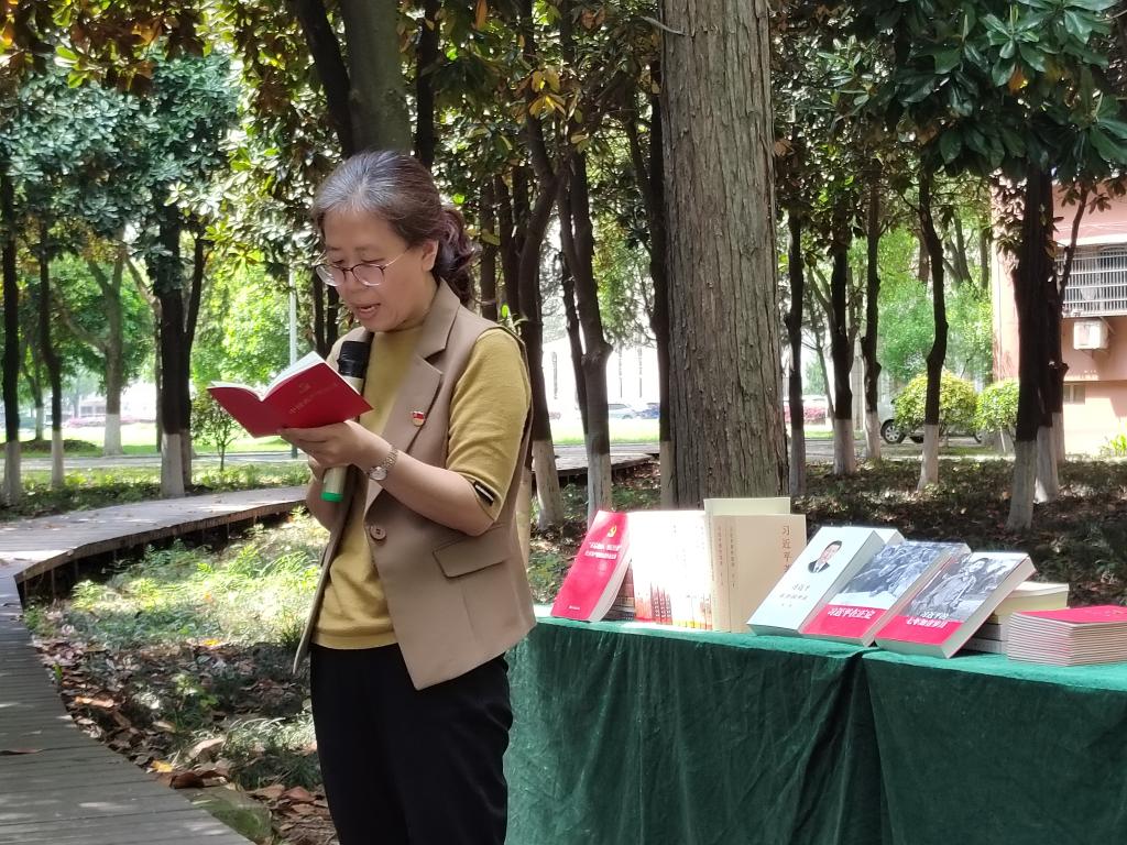 读书交流环节,师生党员分享了《习近平的七年知青岁月》、《习近平谈治国理政》、《平凡的世界》、《给青年的十二封信》等书籍,或诵读经典篇章,或畅谈读书体会,思想流淌,书香阵阵。教师党员还从考研就业等问题给学生提供了指导。