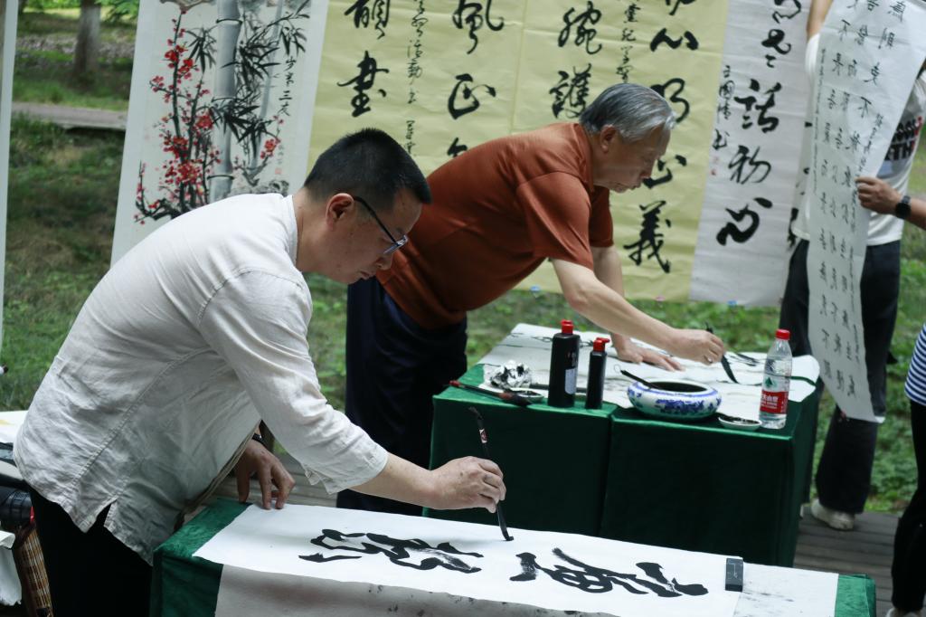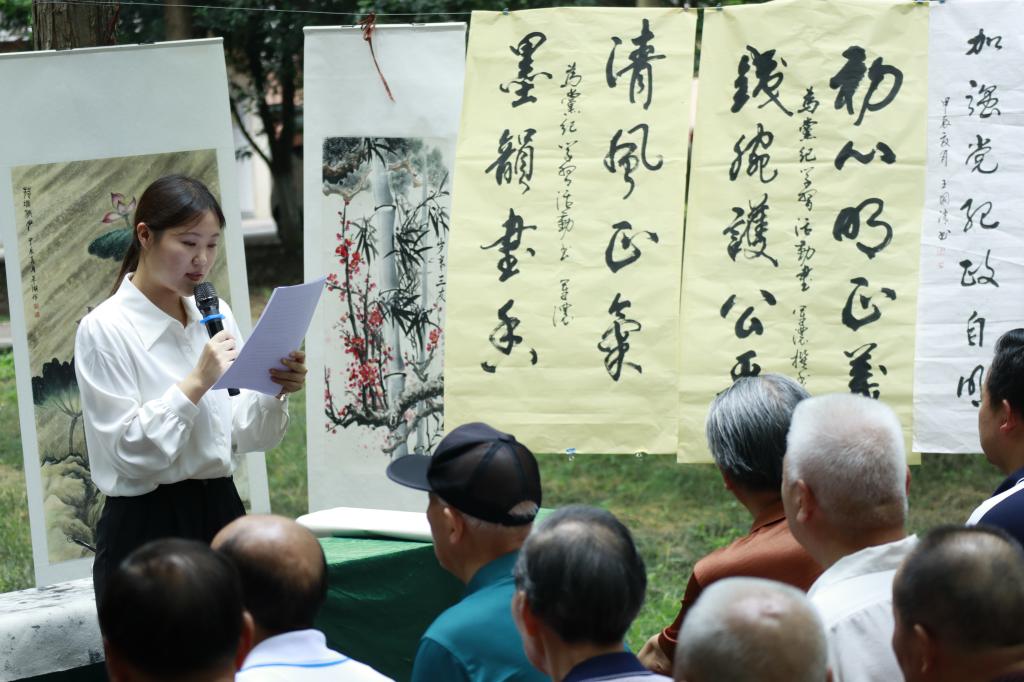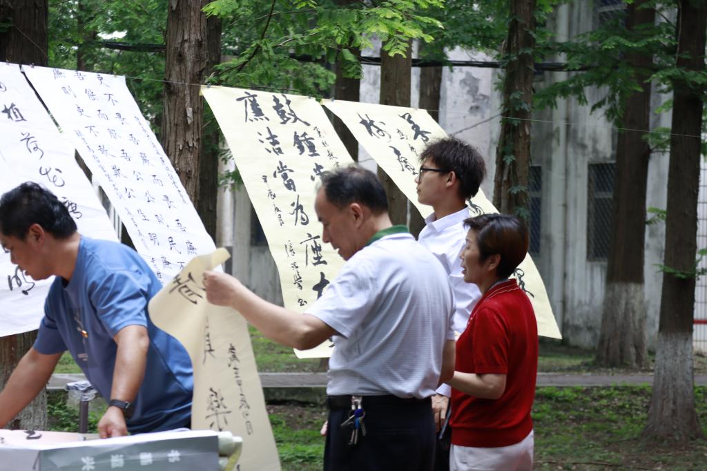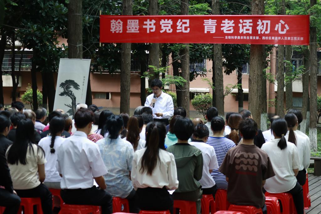 (通讯员 李敏 侯攀 周美君)5月31日下午,西校区杉树林里墨香阵阵、誓言铮铮。生物科学类本科生党支部与西校区离退休人员第三党支部在此联合开展党纪学习教育主题党日活动。青老党员共学党纪条例,共创党纪书画,共谈学习心得。