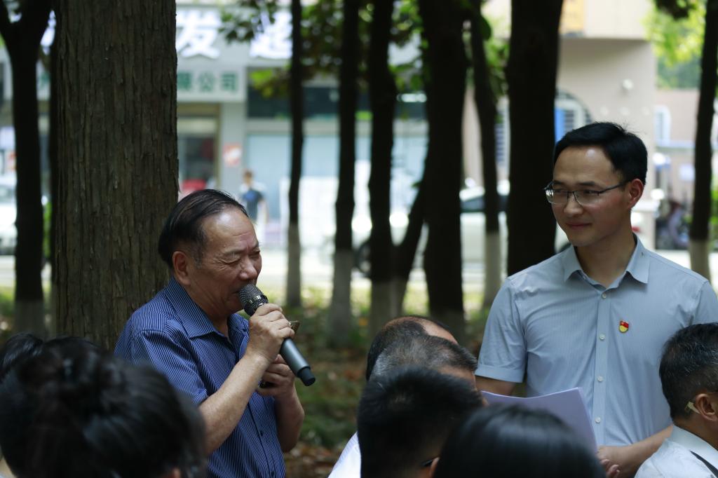 老党员曾庆军同志讲授《听党的话,主动融入发展新质生产力,推动高质量发展大潮》微党课,希望学生党员刻苦学习,锤炼本领,听党话、跟党走。“党的纪律的最大特点就是铁,故称铁的纪律”,“纪律是中国共产党从胜利走向胜利的重要法宝”……主题研讨时,青老党员共话初心,踊跃发言。学生党员向老党员提出关于党纪、党性、初心等问题,老党员一一耐心解答,现场氛围热烈融洽。