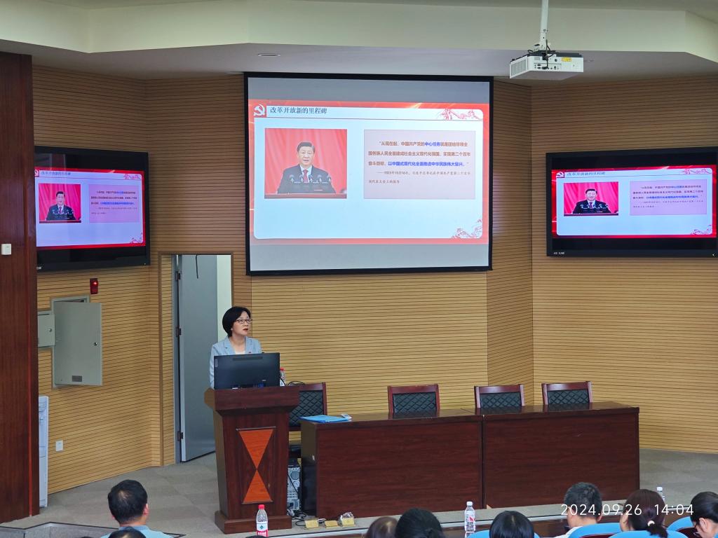 为深入学习领会党的二十届三中全会精神,引导全院师生将思想和行动统一到党的二十届三中全会精神上来,9月26日,我院邀请荆州市委宣讲团成员、马克思主义学院党委书记刘小燕,为全院教职工、学生代表宣讲党的二十届三中全会精神。