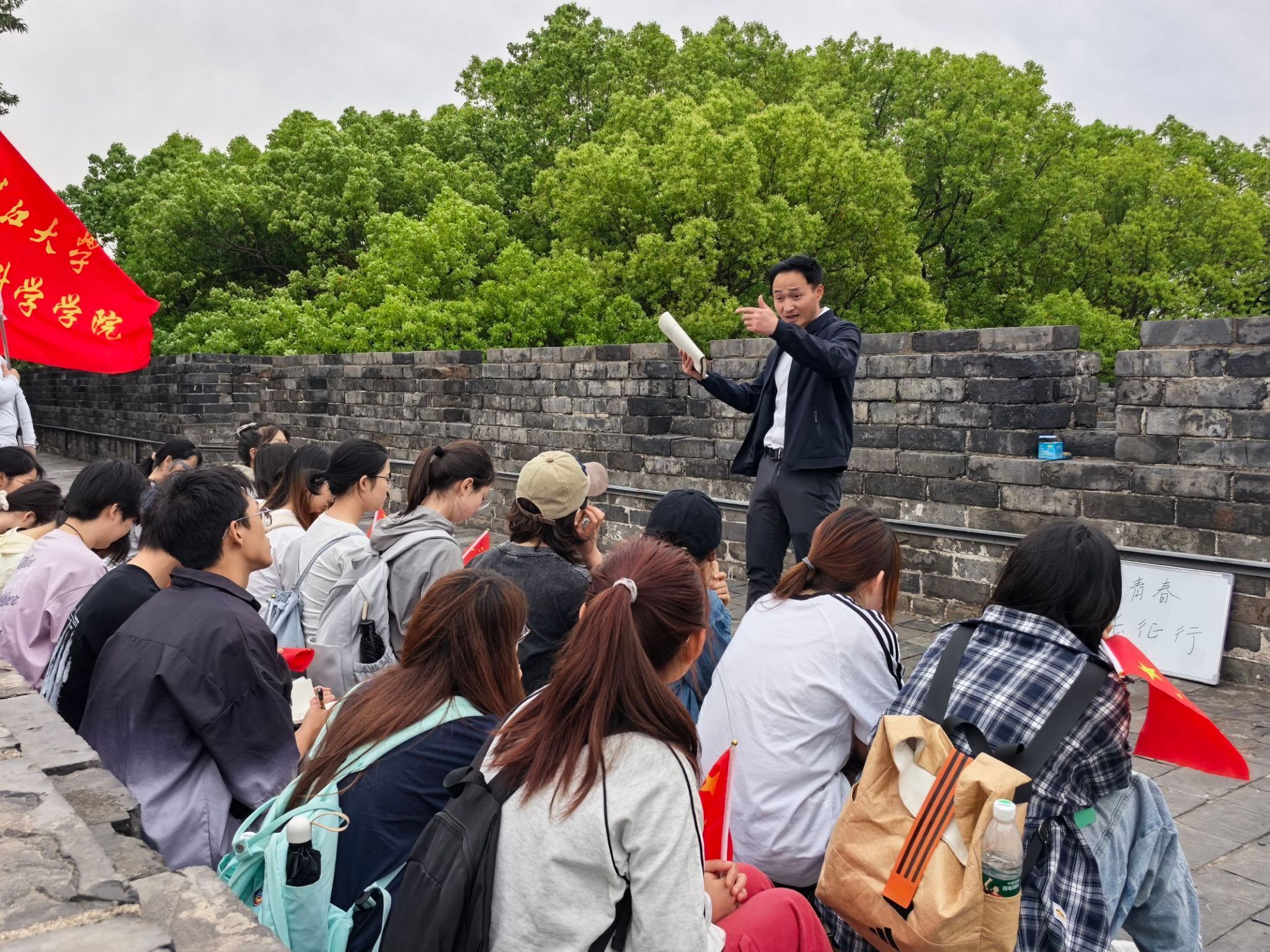 “星空班”始终坚持在实践中检验和升华理论所学。最具代表性的是2025年5月10日开展的 “重走信仰之路:古城墙上的青春长征” 沉浸式主题实践。学员们巧妙地将12.5公里古城墙环线与二万五千里长征建立起等比例对应关系,沿途精心设置湘江战役、遵义会议、飞夺泸定桥等10个“红色教学点”,用脚步丈量信仰,以身心感悟初心,让长征精神在新时代青年心中落地生根。