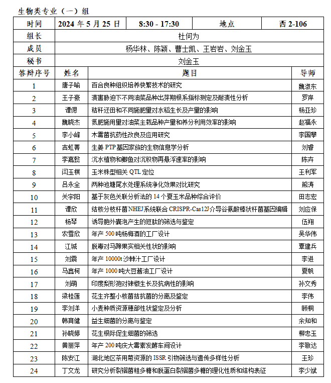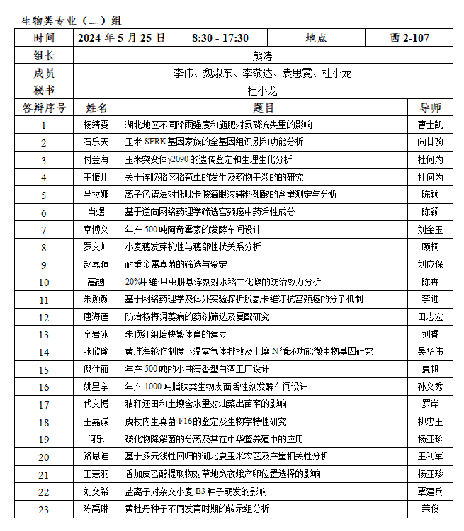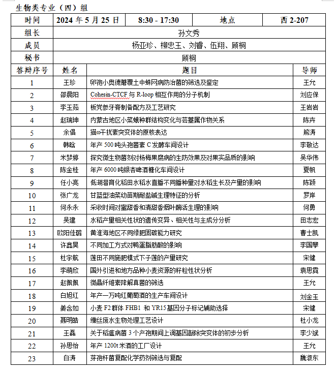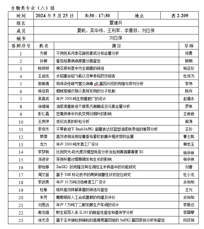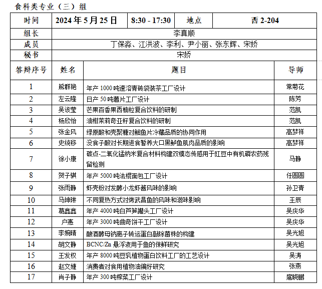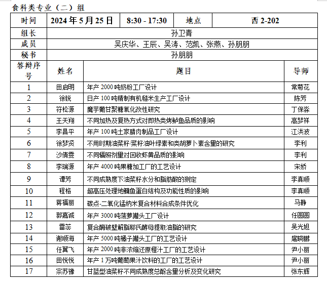 2.每小组安排半天答辩,学生人数应在15名以内;安排全天答辩,学生人数应在30名以内。