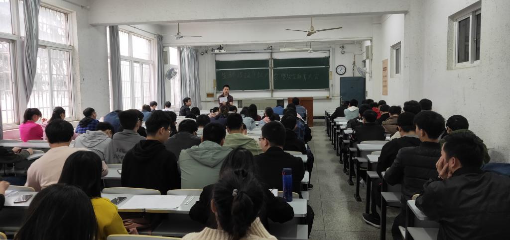 此次会议主要目的是为了了解毕业生在校情况、考研学生初试成绩和关于清明节放假期间学生的安全问题。会上,辅导员黄承石老师首先对在校学生进行逐一签到统计,了解目前各班级在校学生人数,并核查是否有没有请假离校的同学。随后,希望各班学习委员配合统计各班考研同学的成绩情况,并谈到了研究生复试的应对措施和技巧,鼓励成绩不太理想的同学积极寻找调剂信息。最后,强调了关于清明节放假的安全问题。告知全体学生必须按照规定程序请假,切记保障自身财产和生命安全,禁止去湖边、河边等比较危险的地方。同时,在注意保持寝室卫生,禁止使用违规电器,杜绝一切安全隐患。