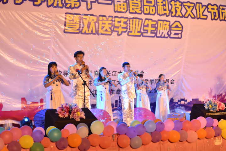 (通讯员 吴寄荣刘涛)6月2日晚7时许,由共青团长江大学委员会主办、3044永利团委学生会承办的第十一届食品科技文化节闭幕式暨欢送毕业生晚会在西校区主席台隆重举行。莅临本次晚会的嘉宾有:长江大学学生工作部金鑫部长,动科院党委副书记王雨老师,九阳社区熊书记、曾主任,园艺园林学院雷静老师、刘刚老师,我院党委书记冯朝章老师、副院长严寒老师、党委副书记谢作喜老师、食品科学与工程系主任江洪波老师、食品质量与安全系主任张欣老师、李伟老师、孙文秀老师、学工办主任周敏老师、团委书记班元元老师、16级辅导员张思祺老师和15级辅导员朱司甲老师。